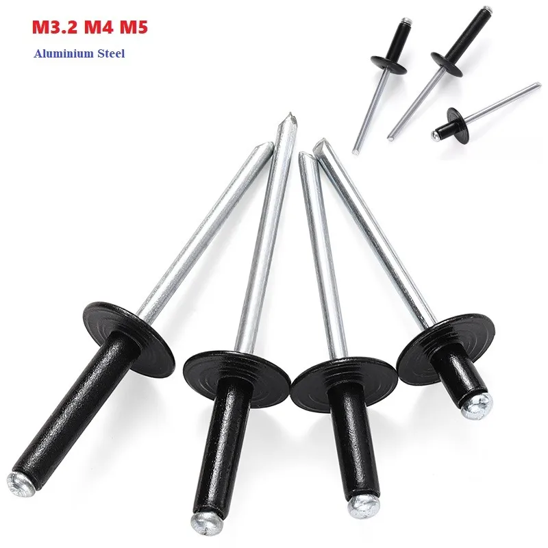 Rivetto cieco nero con testa flangiata grande in acciaio in alluminio M3.2 M4 M5 Tappo grande con estremità aperta Rivetto cieco con cappuccio Rivetto diviso