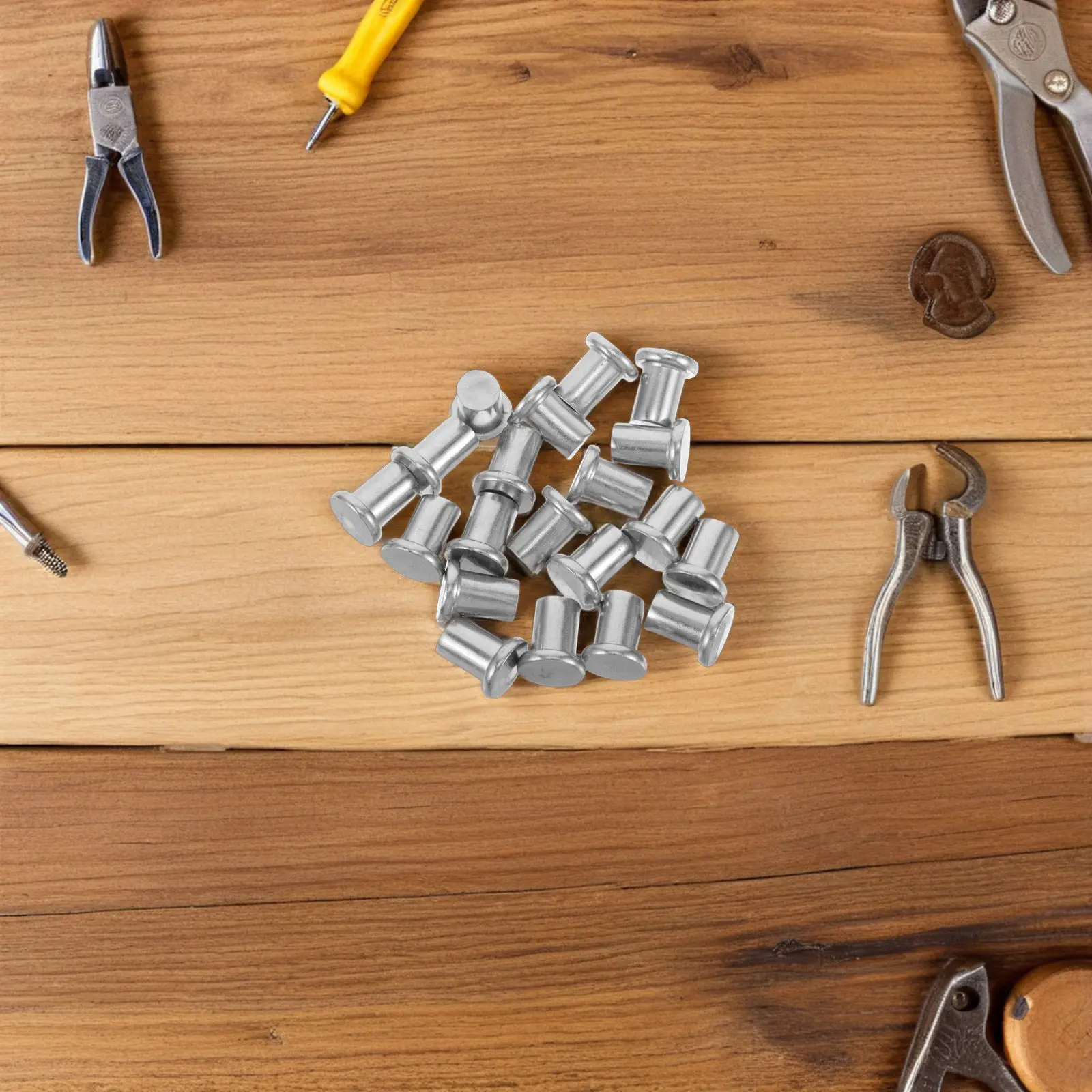 Kit di rivetti in metallo da 20 pezzi, rivetti solidi a testa piatta in acciaio inossidabile, rivetti robusti per progetti fai-da-te di artigianato in pelle e legno