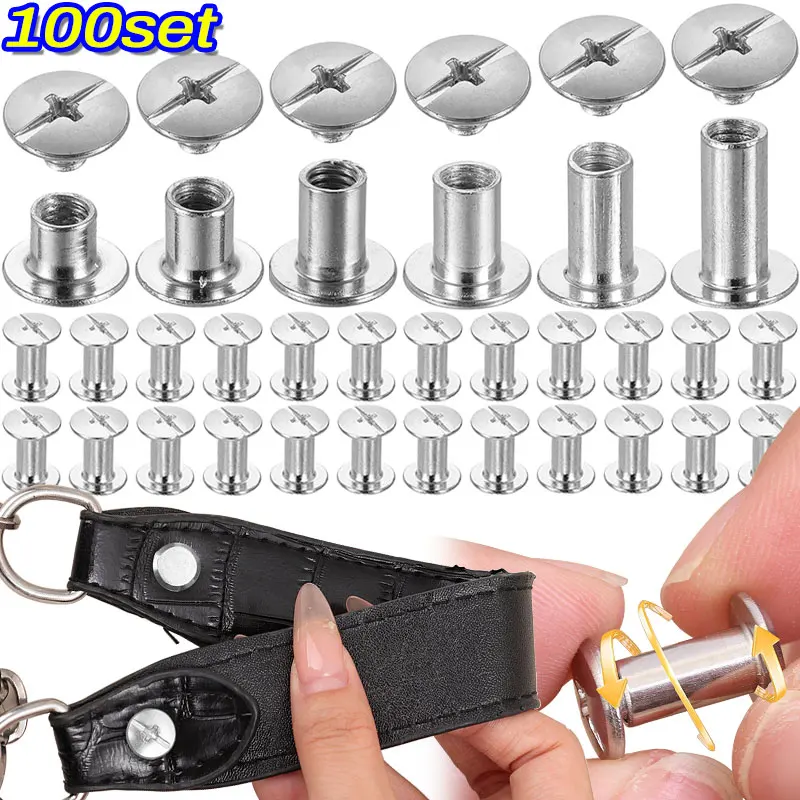 Set di 10-100 Rivetti a Testa Piatta in Acciaio Inox 304 per Fissaggio, per Pelle, Legno e Metallo