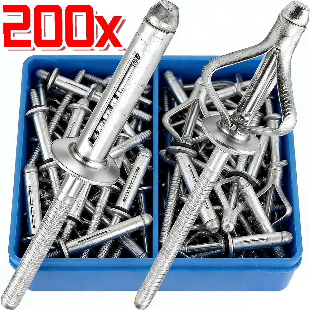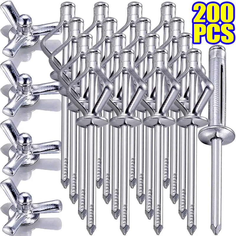 50/200 Pezzi Rivetti a Tre Punte Leggeri in Lega di Alluminio, Bulloni Pieghevoli per Lavorazione Metalli, Rivetti a Tripla Presa per Distribuzione del Carico
