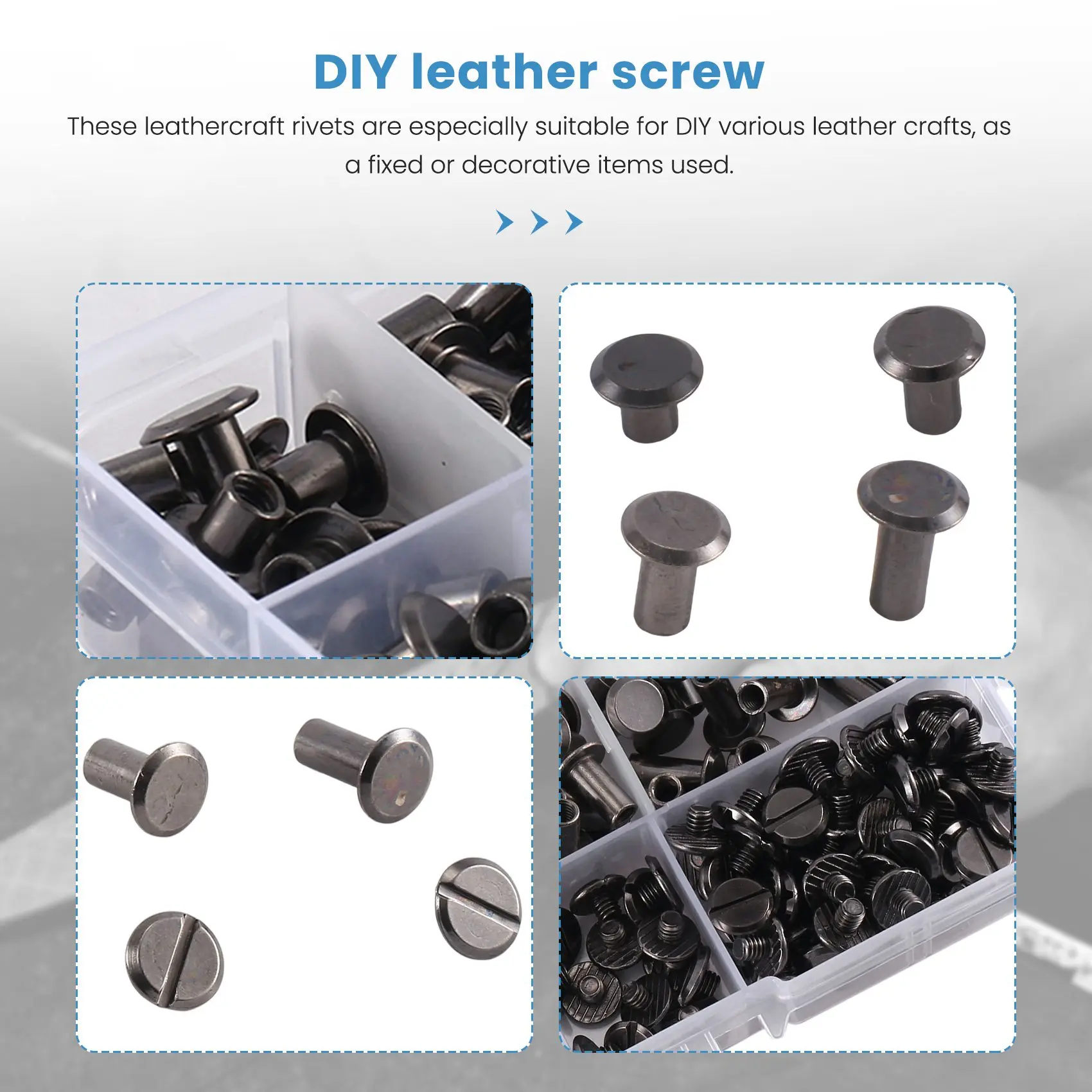 Kit assortito di 90 set di viti Chicago, 6 misure di rivetti in pelle a testa piatta rotonda, borchie a vite in metallo per lavorazione artigianale del cuoio fai da te-AA26