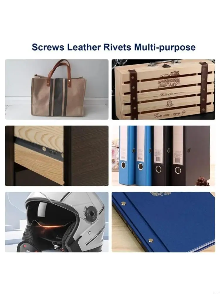 Set di 200 viti in acciaio al carbonio, rivetti a testa piatta per artigianato in pelle, cinture, borse, rilegatura di libri, kit di fissaggio per documenti e fai da te