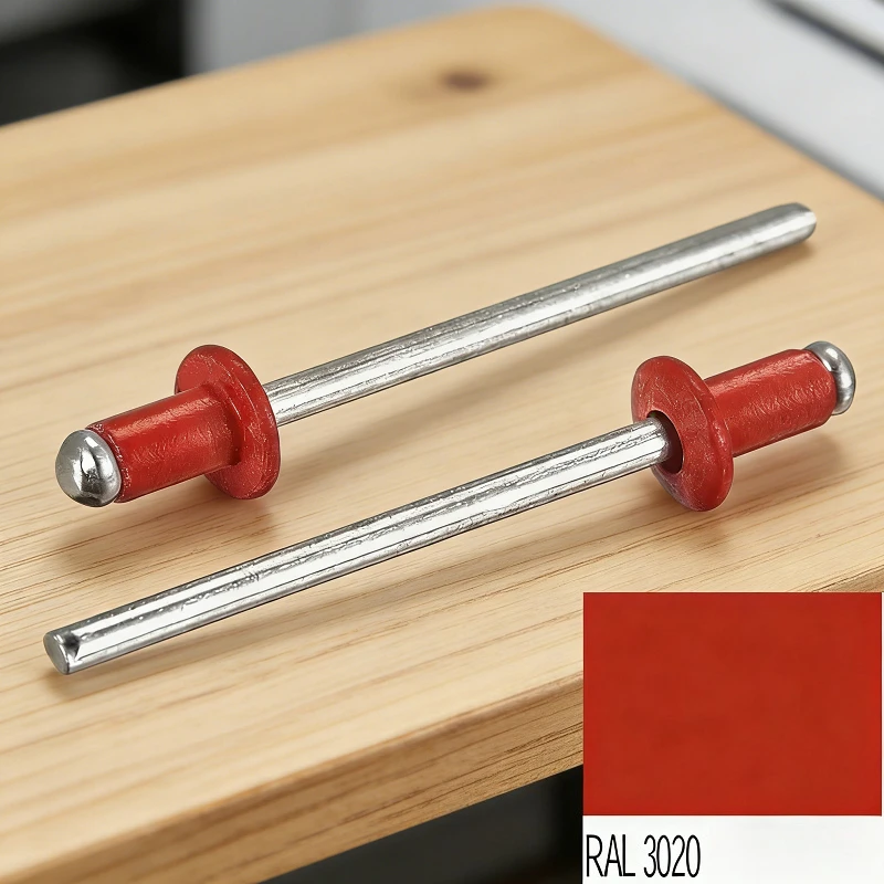 Rivetti a Strappo Rossi RAL3020 con Testa in Alluminio e Mandrino in Acciaio, Set di Rivetti Colorati a Estremità Aperta da 1/8 di Pollice, Elementi di Fissaggio per Decorazione