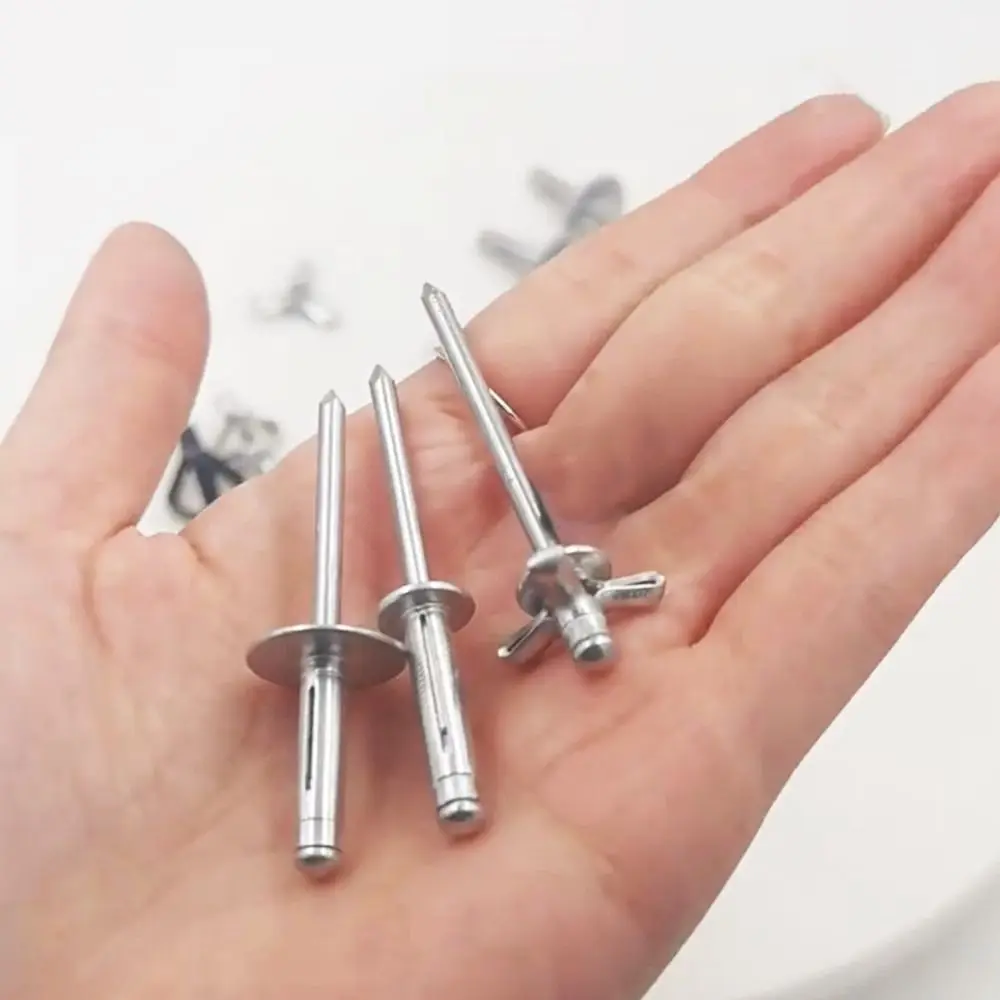 50 pz Durevole 3.2mm 4.0mm 4.8mm Rivetto Cieco Pieghevole Argento Testa Rotonda Tri Grip Rivetti Tri-fold Rivetto In Lega di Alluminio