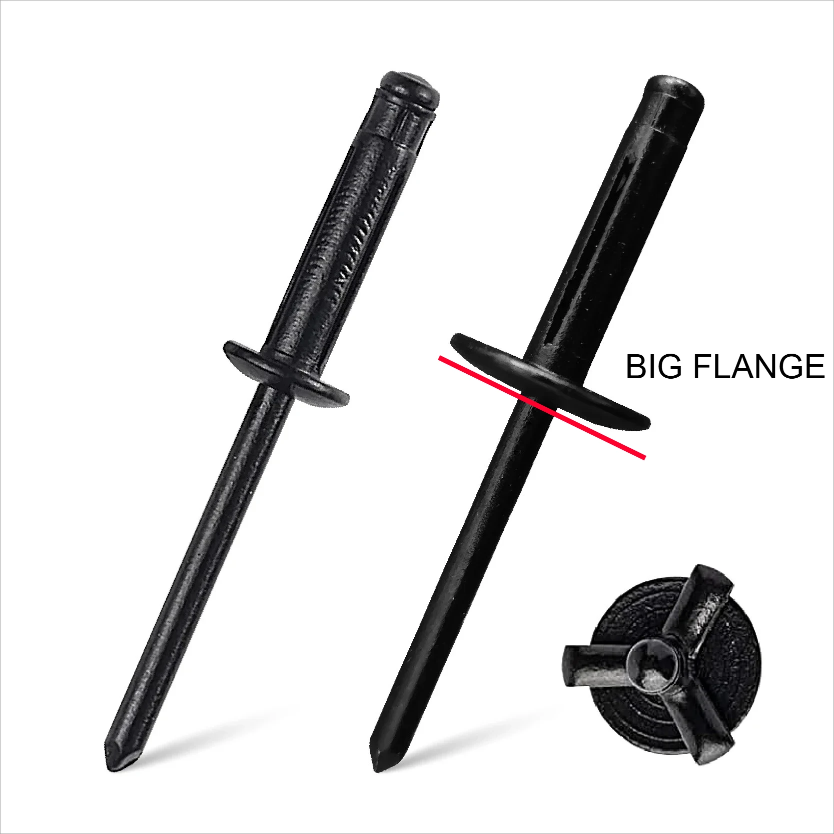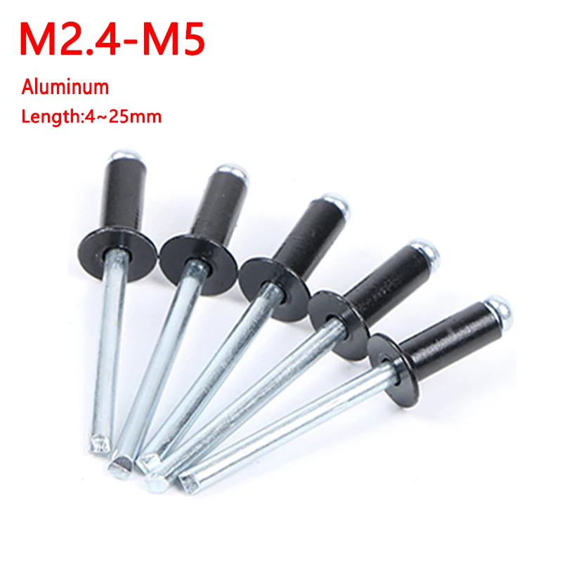 50 pz Nero Verniciato In Alluminio Tri-Fold Esplosione Pop Rivetti Grande Flangia Blub Cieco Rivetto Interni Auto Aria Condizionata di Fissaggio