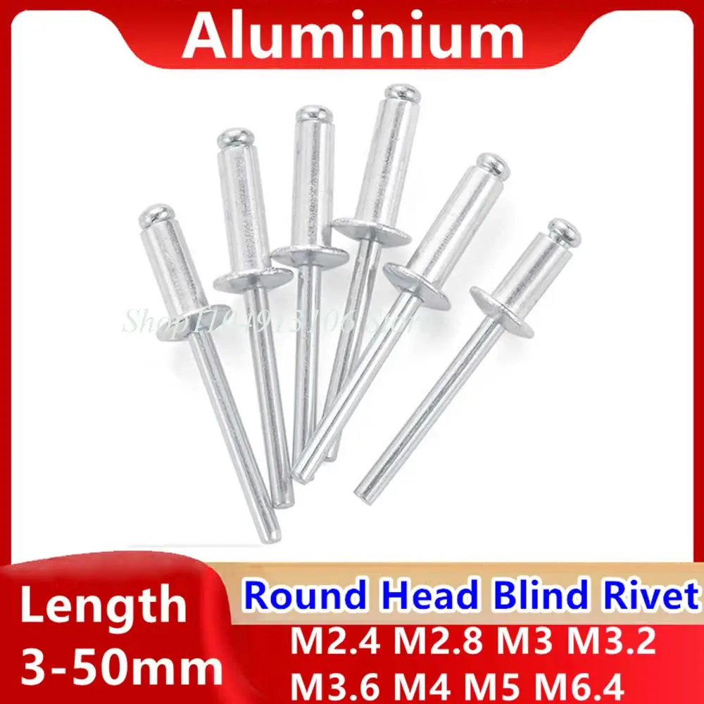 Rivetti ciechi a testa tonda in alluminio Decorazione per unghie Rivetto pop M2.4 M2.8 M3 M3.2 M3.6 M4 M5 M6.4 Lunghezza 3 4 5 6 6.4 7-50mm
