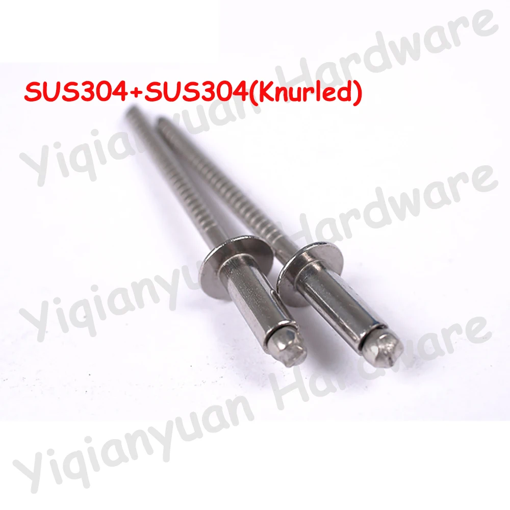 Yiqianyuan M5 SUS304 Corpo zigrinato in acciaio inossidabile aperto Pop Blind Rivet Pull Nails Strumento Testa tonda Rivetto autofilettante GB12618