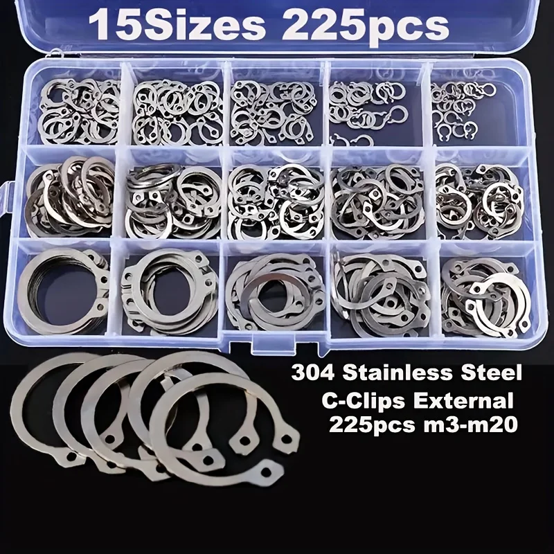 Anelli di fissaggio per alberi in acciaio inossidabile da 500 pezzi, anelli di fissaggio esterni per alberi, anelli a scatto, molle a scatto per cuscinetti