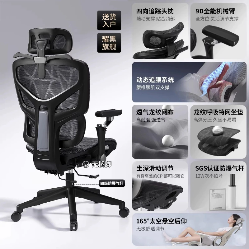 Sedia Ergonomica con Supporto Lombare, Comoda Sedia da Ufficio e Gaming, Reclinabile, Anti-Fatica, per Casa e Ufficio