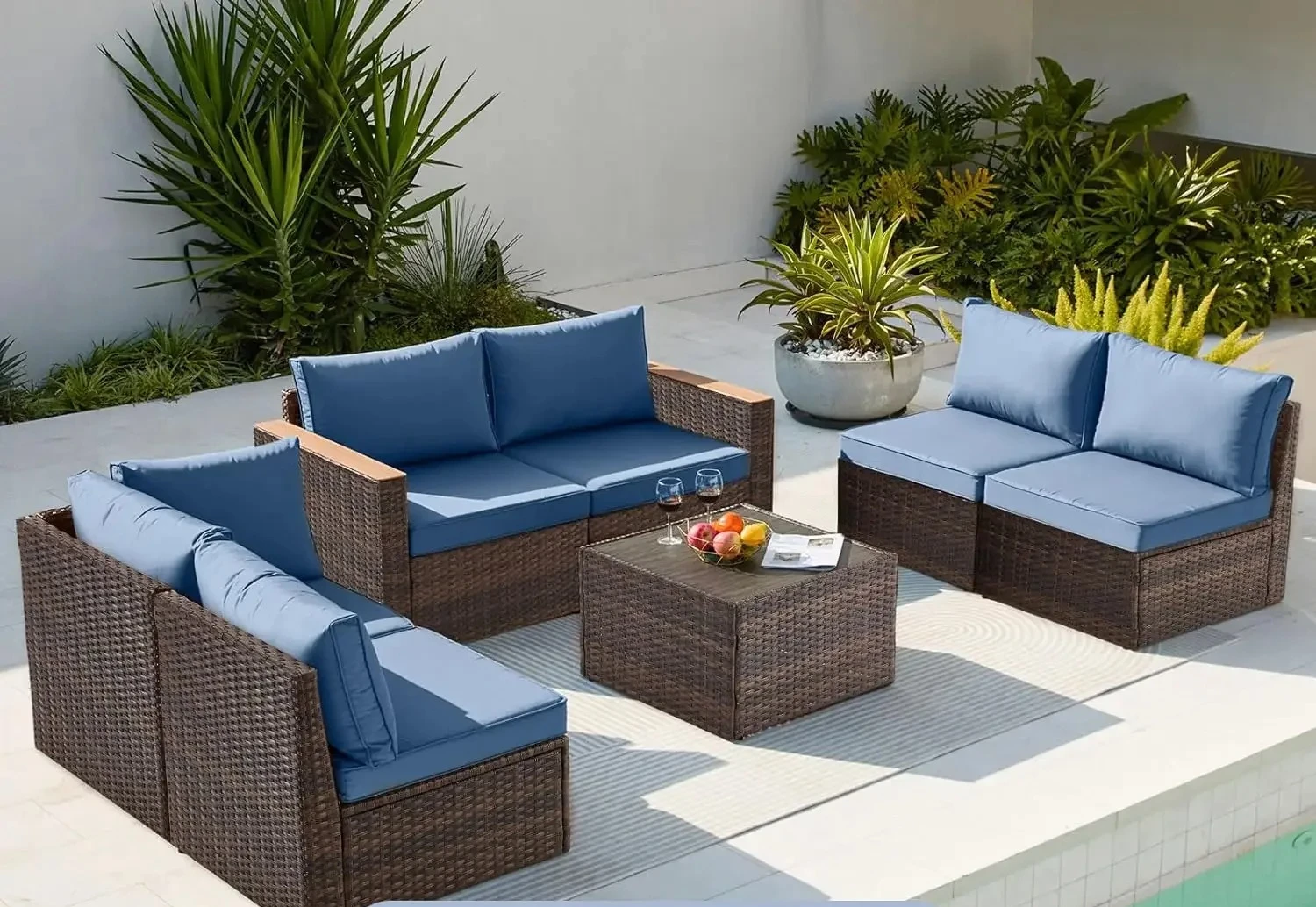 l Set di mobili da giardino a installazione rapida, mobili da giardino da esterno da 7 pezzi, divano da esterno in vimini resistente, divano da patio, conversazione