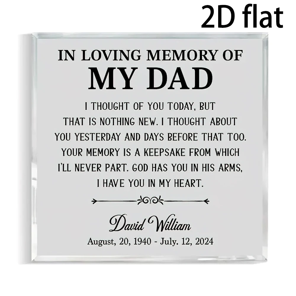 Targa commemorativa in acrilico piatta 2D personalizzata per papà - Personalizzata nel blocco di memoria amorevole con messaggio inciso, per interni/esterni