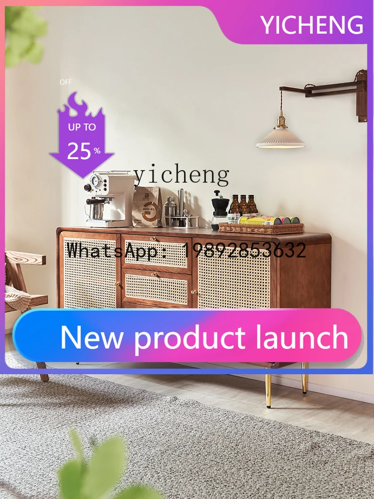 Credenza G1 in Legno Massello e Rattan, Mobile per Soggiorno, Armadietto da Cucina, Cassettiera per Stoccaggio