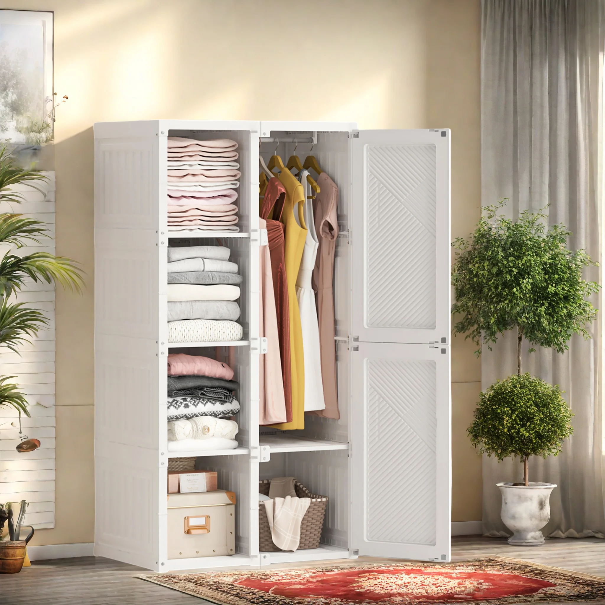 Armadio portatile, grande armadio con 6 ante, 5 ripiani e aste appendiabiti, robusto e facile da montare, armadio con copertura per la camera da letto, bianco 69 x 136 x 50 cm