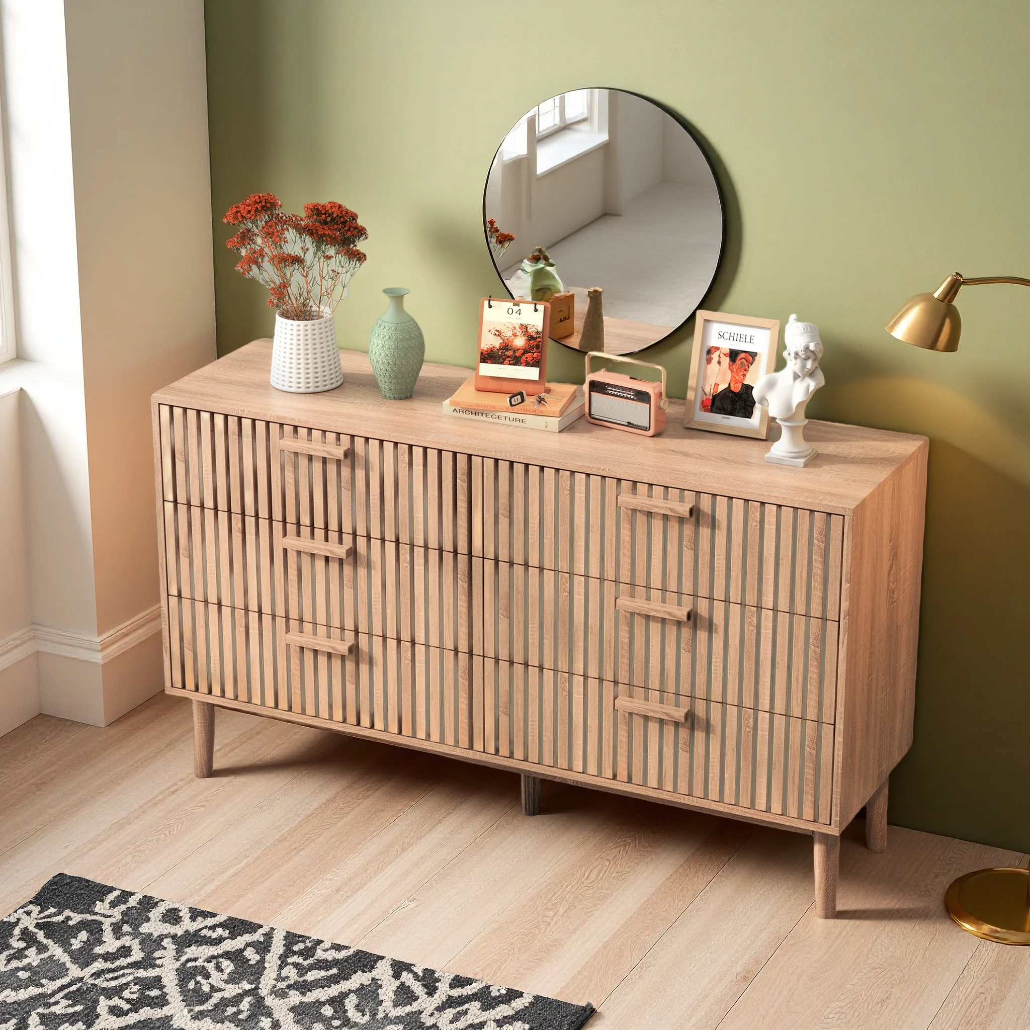 Comò Comanlai con Cassetti in Legno Stile Scandinavo Moderno, Mobile Contenitore con Cassetti per Camera da Letto