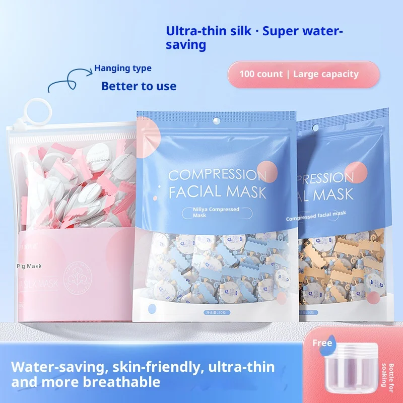 Foglio viso compresso ultrasottile Maschera monouso di grado spa Carta idratante Maschera di seta di cotone a pieno facciale con linguette di fissaggio