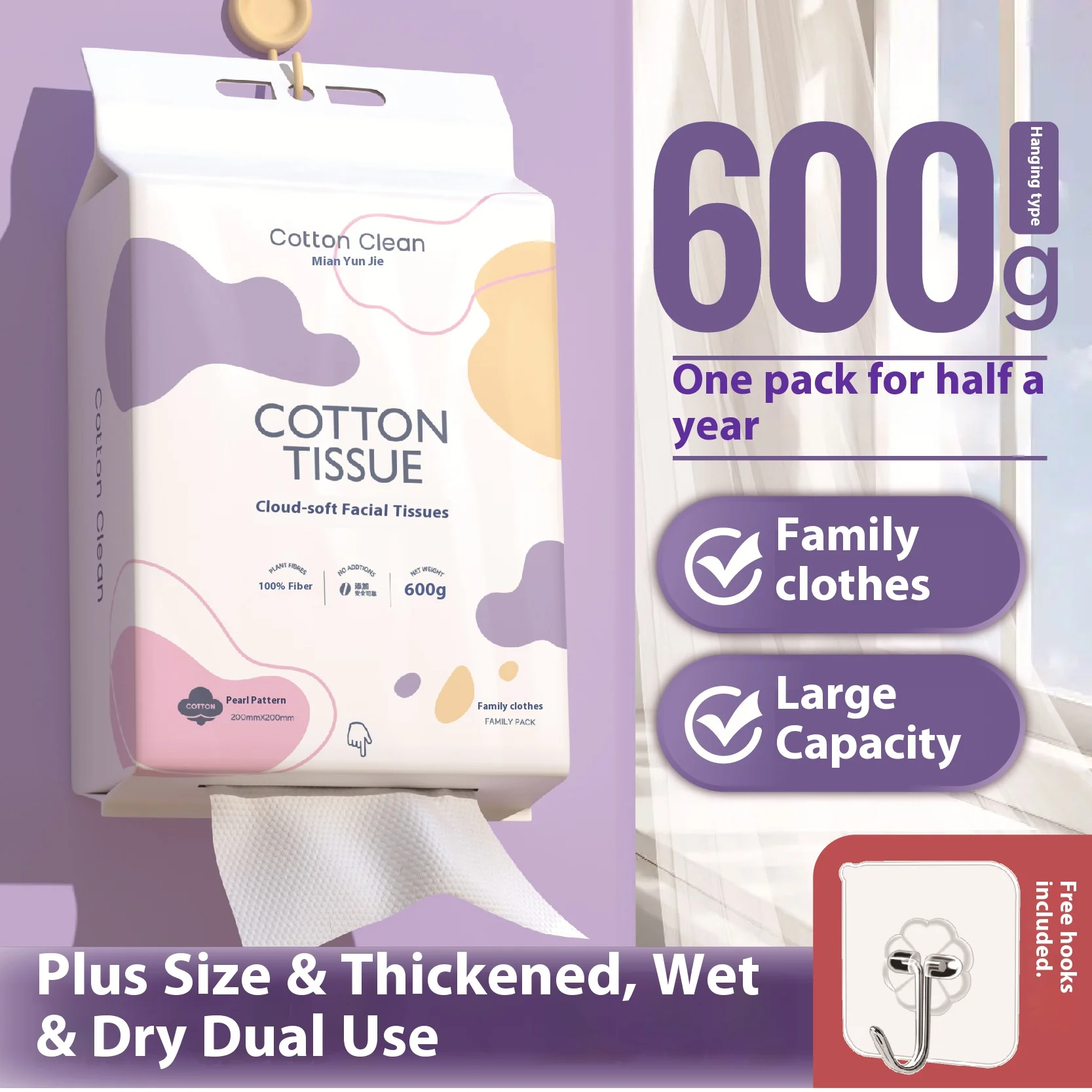 Nuovo pacchetto famiglia super grande appeso al fondo asciugamano per il lavaggio del viso estraibile salone di bellezza morbido asciugamano detergente usa e getta 600g