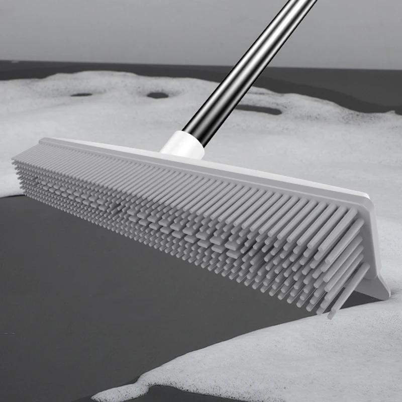 Scopa in gomma per tappeti, rastrello con manico lungo per raschietto, per peli di animali domestici, scopa per rimozione peli di animali domestici, per tappeti fluff, pavimenti in legno, senza graffi