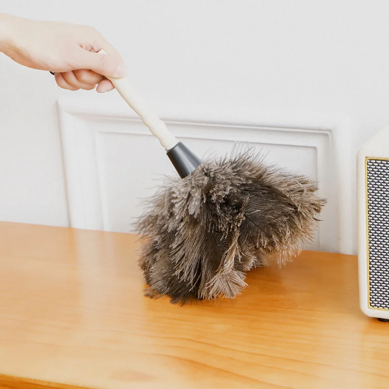 Spolverino Antistatico in Piume di Struzzo con Manico in Legno per Pulizia di Casa, Soggiorno, Ufficio, Mobili e Interni Auto