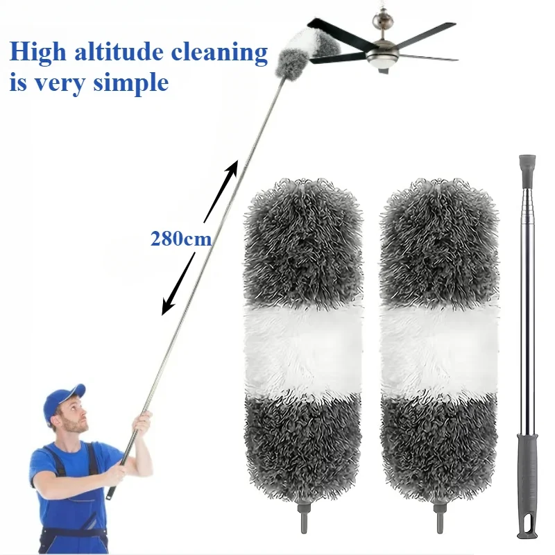 Spazzola per la pulizia da 2,8 m in microfibra, estensibile, curva, per soffitti, scopa per la pulizia domestica, raccoglitore di polvere elettrostatico