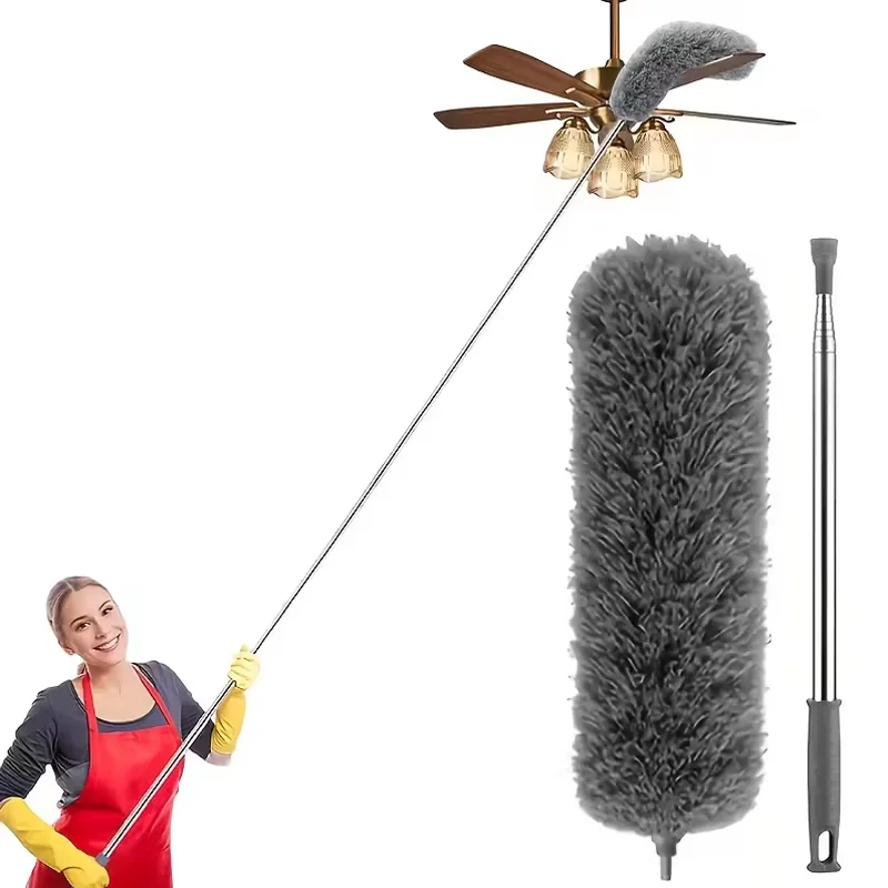 Piumini per la Pulizia, Piumino Extra-Lungo da 97 Pollici con Asta Estensibile, Testa in Microfibra Pieghevole, Lavabile, per la Pulizia di Ventilatori a Soffitto