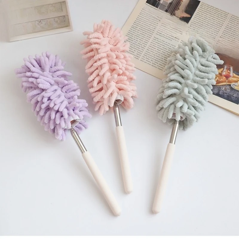 1Pc Spolverino retrattile Manico lungo in acciaio inossidabile Spazzola per spolverare Strumenti per la pulizia della casa per auto Spazzola per polvere in microfibra