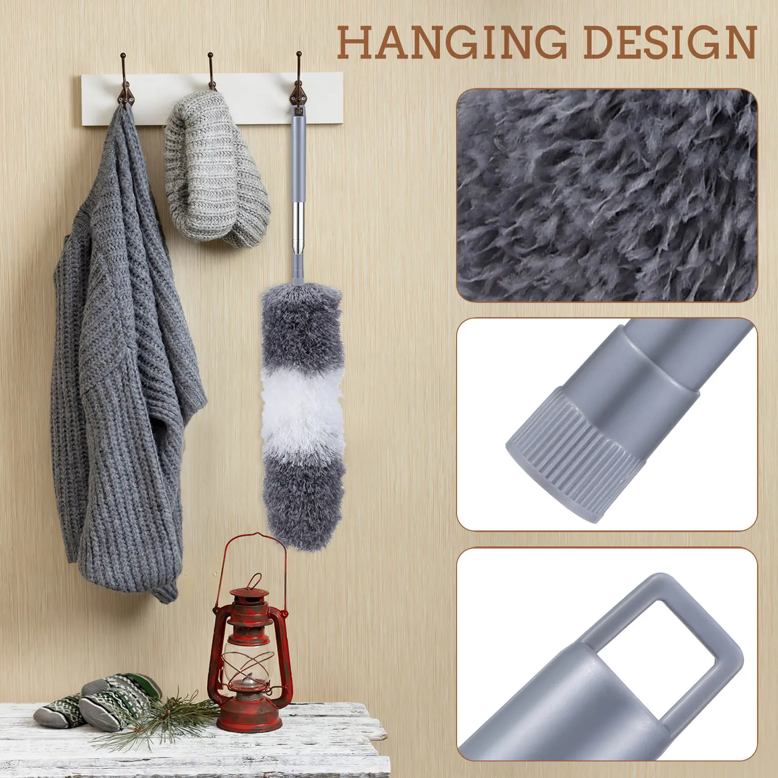 Spazzola per la pulizia del ventilatore a soffitto in microfibra, estensibile fino a 80 cm, con manico lungo, riutilizzabile, per una pulizia domestica senza sforzo.