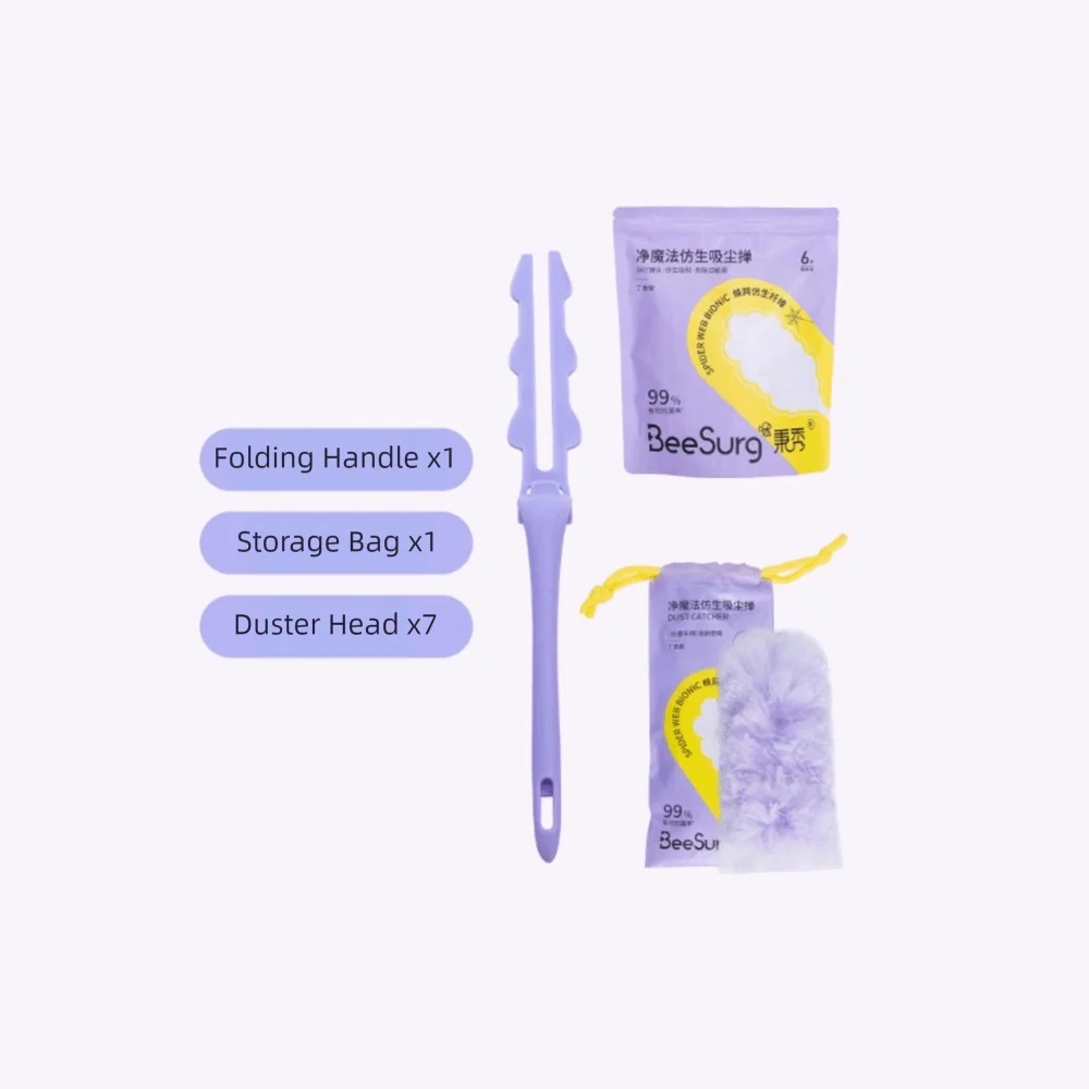 Kit Spolverino in Microfibra per Rimozione Ragnatele, Lavabile, per Pulizia Soffitti, Spolverino Telescopico a Lunga Portata per Uso Domestico