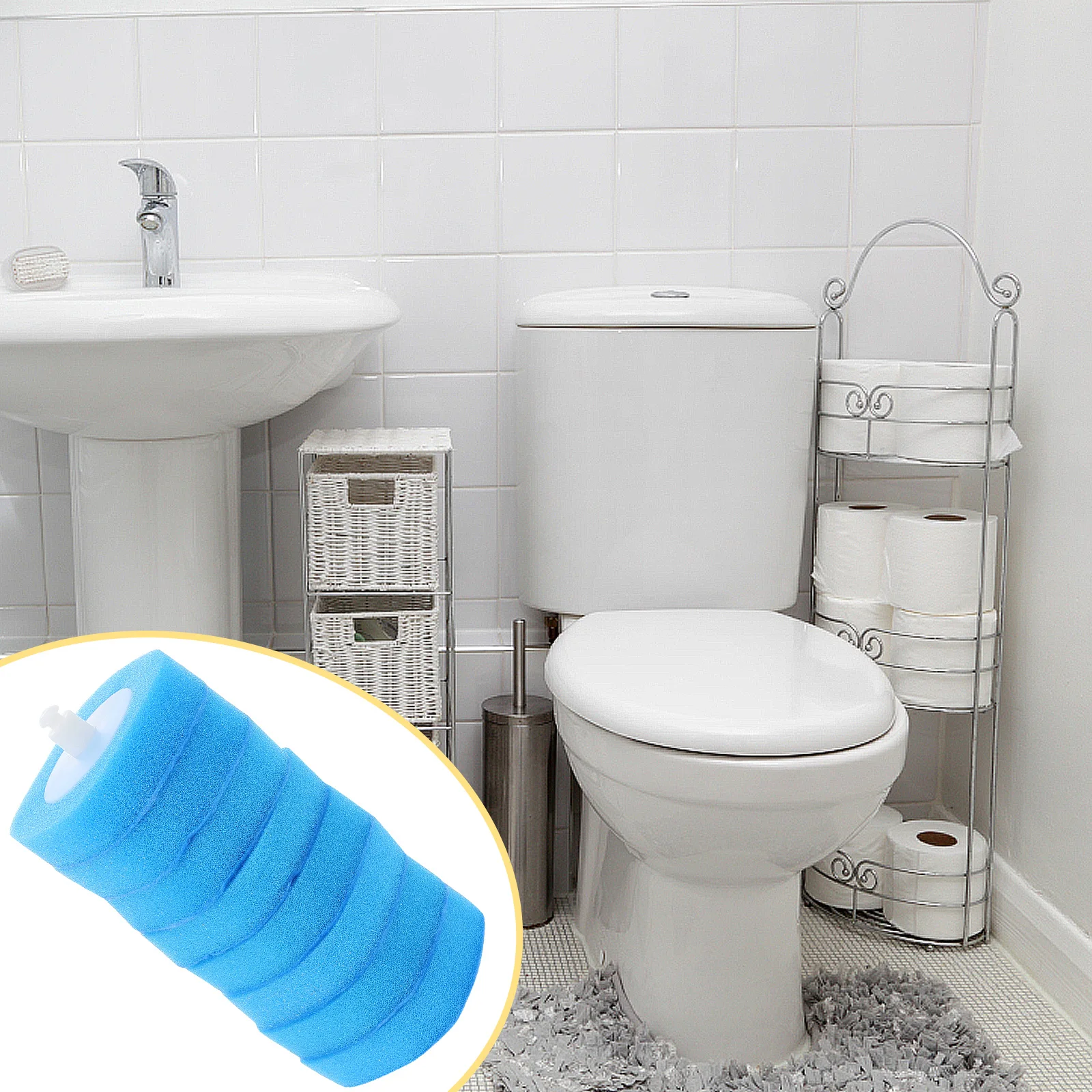 4 pezzi di scopino per WC, copertura antispruzzo, accessori di ricambio, coperchio per spazzola per la pulizia del bagno, blocco odori, accessori per WC