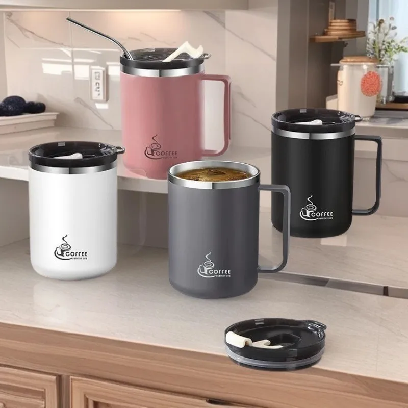 Tazza da caffè al latte a doppio strato da 430 ml Tazza da caffè termica in acciaio inossidabile con manico Tazza isolata Tazze d'acqua sigillate portatili