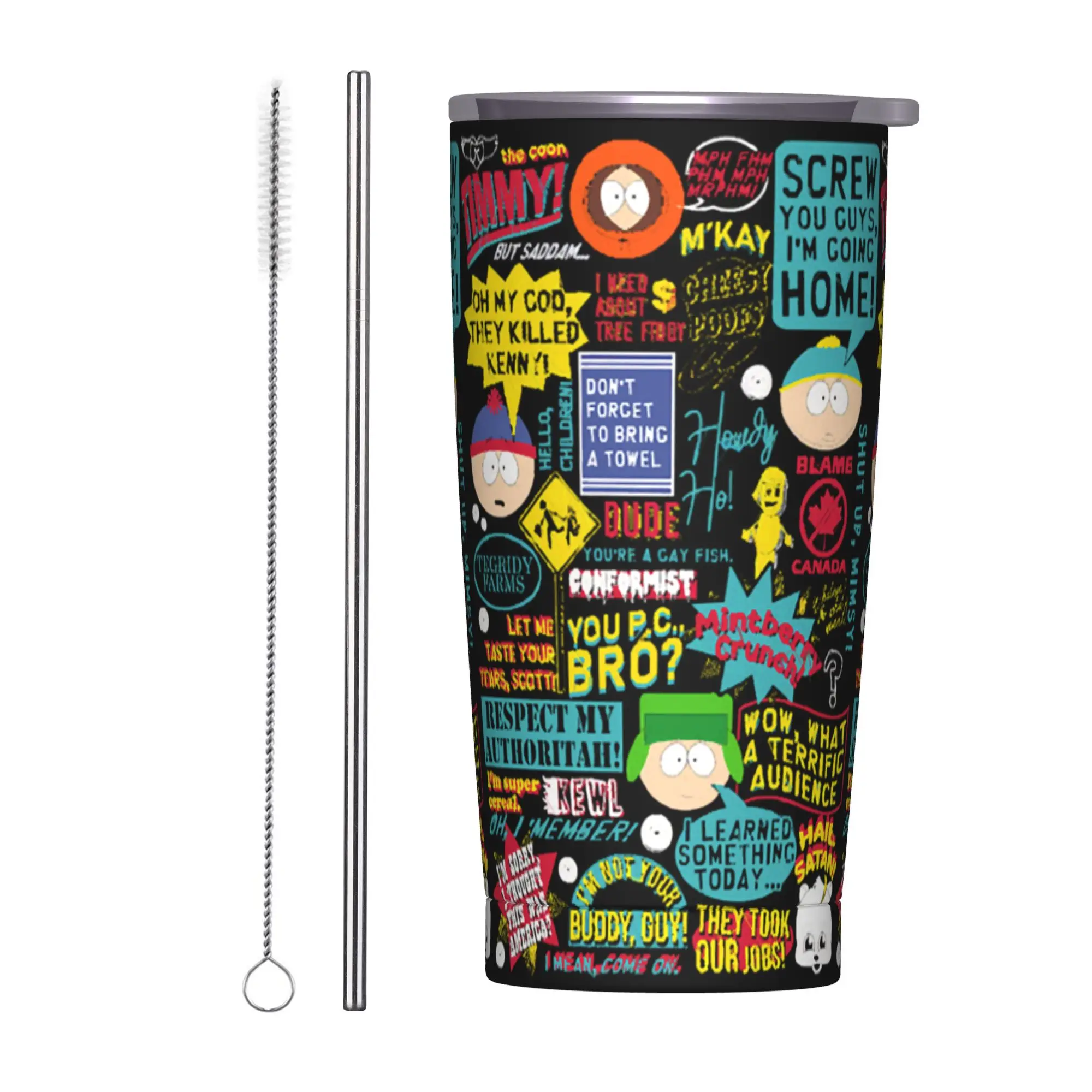 Tazza Termica Souths Park con Citazioni di Cartoni Animati, Doppia Parete Isolata Sottovuoto, con Coperchio e Cannuccia, Bottiglia in Acciaio Inox da 20oz