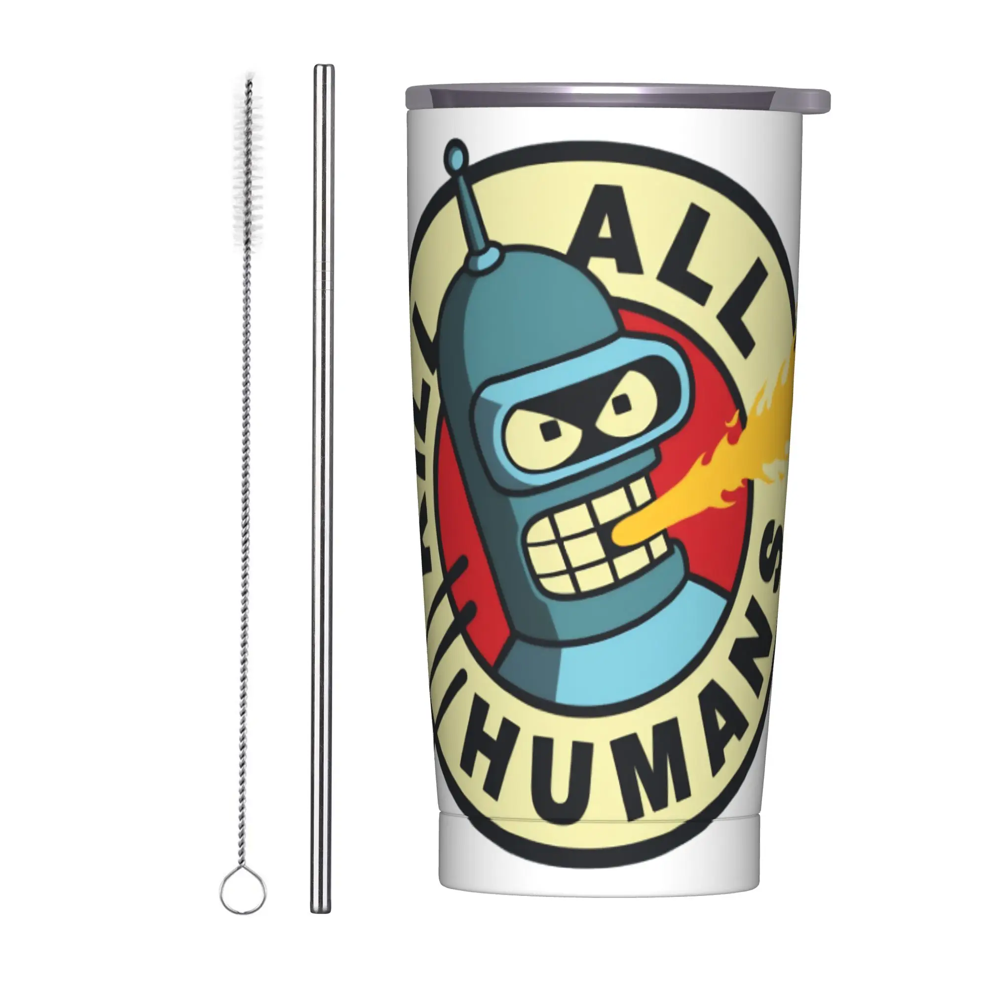 Tumbler Sottovuoto Futuramas, Tazza Isolata a Doppia Parete con Coperchio e Cannuccia, Bottiglia in Acciaio Inox per Casa, Scuola, Auto, 20 once