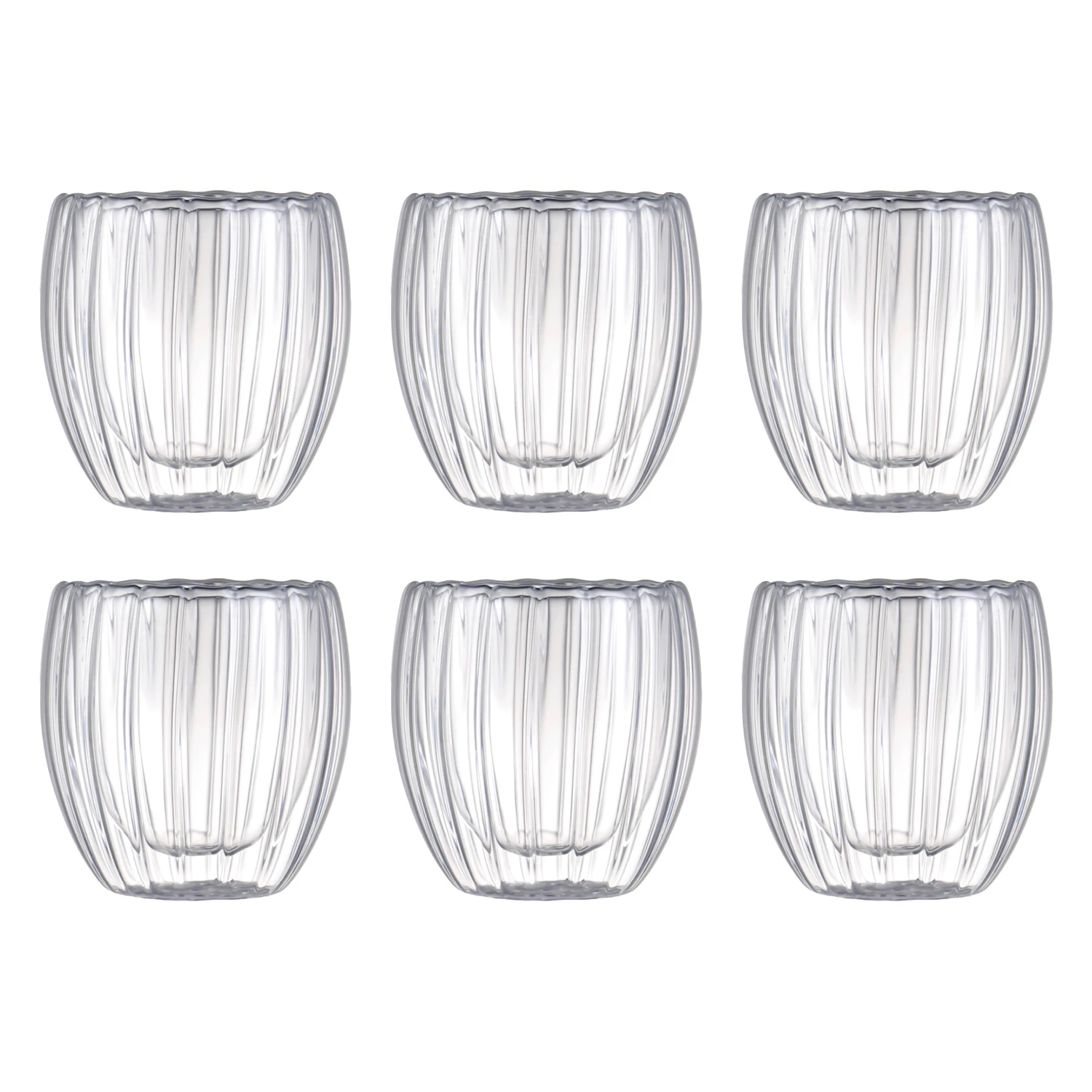 6 tazze in vetro borosilicato a righe a doppio strato, tazze da caffè in stile moderno, termosolante e antiscottatura, 250 ml/8,5 once, leggere e robuste, adatte per latte, cappuccino, caffè espresso, bevande fredde, bevande calde