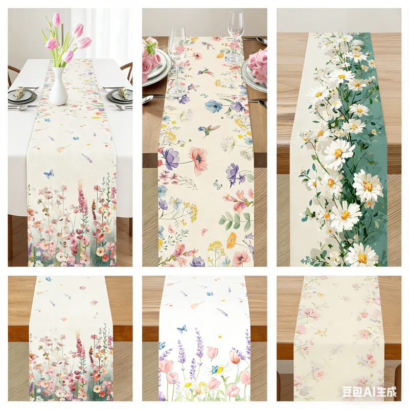 Runner da Tavola Vintage con Stampa Floreale Primaverile, Tovaglia con Fiori e Farfalle ad Acquerello per Sala da Pranzo, Matrimoni, Feste e Decorazioni per la Casa