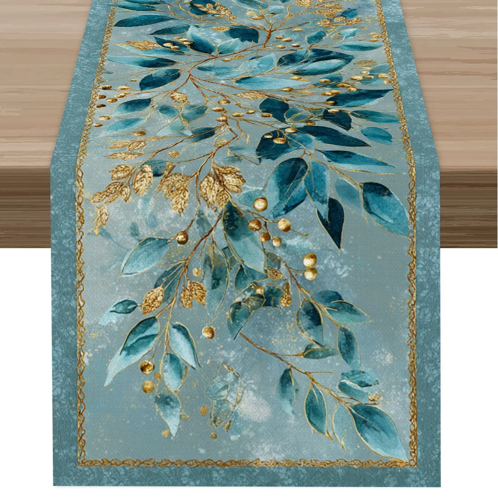 Runner da tavola con eucalipto verde acquamarina, stampa 2D su lino, copritavolo decorativo per soggiorno e banchetti, motivo foglie di eucalipto, perfetto