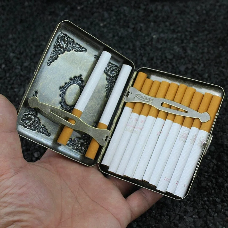 Portasigarette Vintage in Metallo 2026, Nuova Tendenza Retrò, Apertura a Molla su Due Lati, Contenitore per Tabacco, Regalo per Uomo