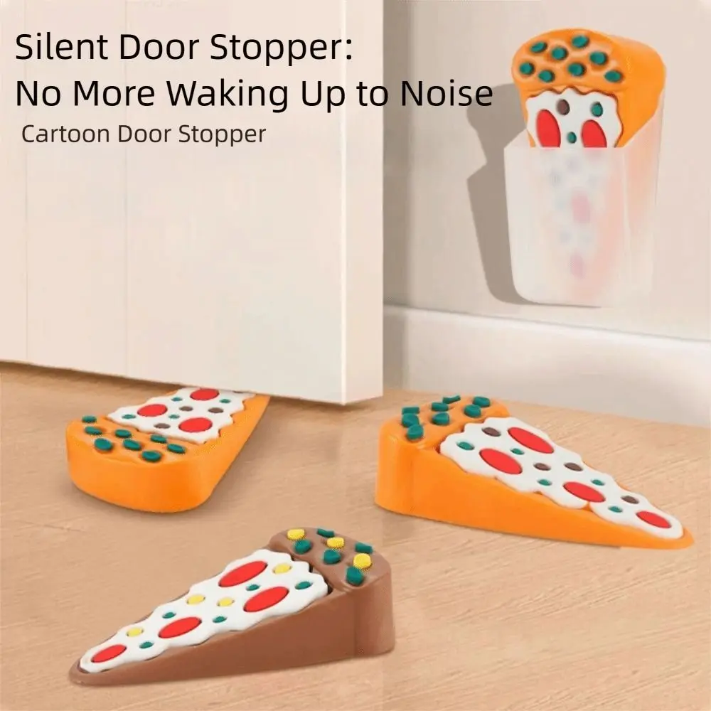 Fermaporta in silicone e silicone, antiurto, riutilizzabile, anti-collisione, antiscivolo, design per pizza dei cartoni animati