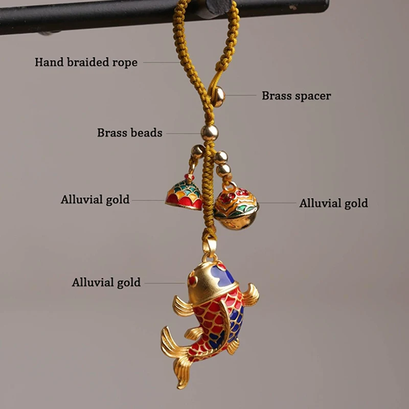 Portachiavi con ciondolo per carpa Portachiavi per auto appeso Decorazioni per borse da donna Ornamento Portachiavi con ciondolo con collana di pesci in rame