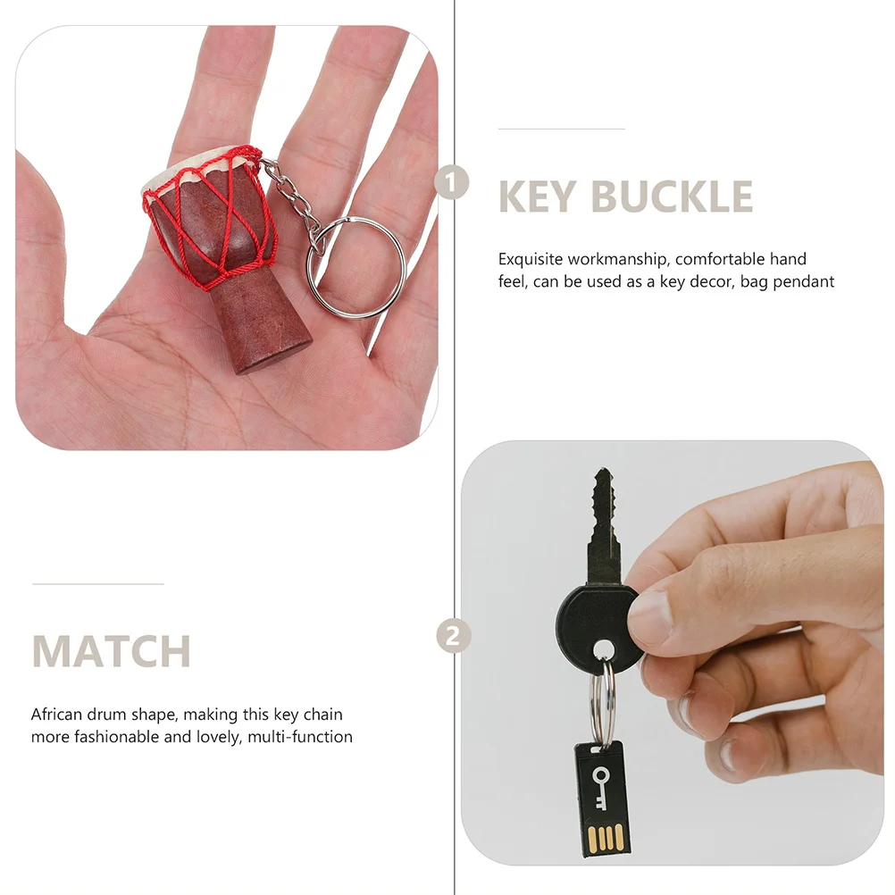 Set di collane portachiavi con tamburo africano, mini ciondolo squisito, metallo durevole, legno, pelle di pecora, ciondolo per borsa, souvenir da viaggio