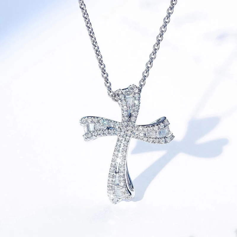 Collana con ciondolo croce di lusso Huitan piena di gioielli da sposa alla moda con zirconi cubici di cristallo per collana a catena Color argento da donna