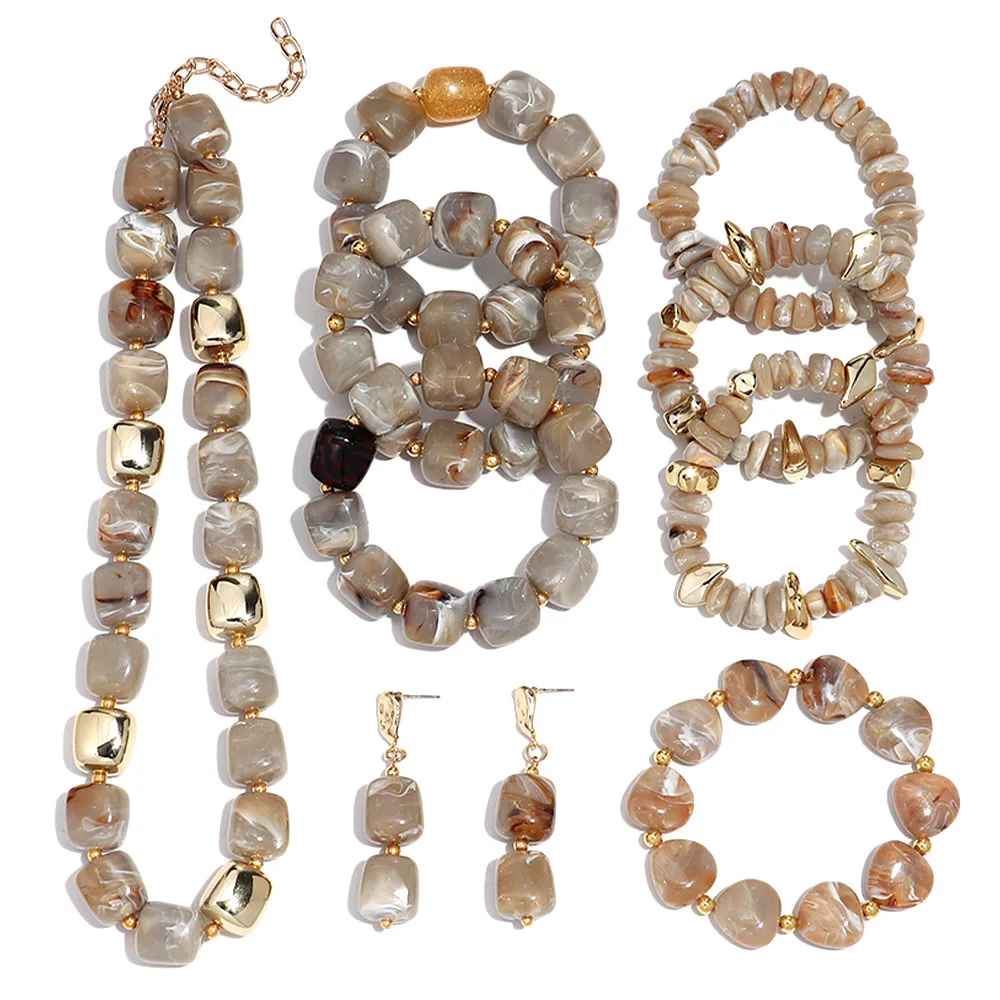 Nuovi Braccialetti Elastici con Perline Geometriche in Acrilico Effetto Craquelé, Collana con Perline Irregolari Marmorizzate, Gioielli da Donna, Regali