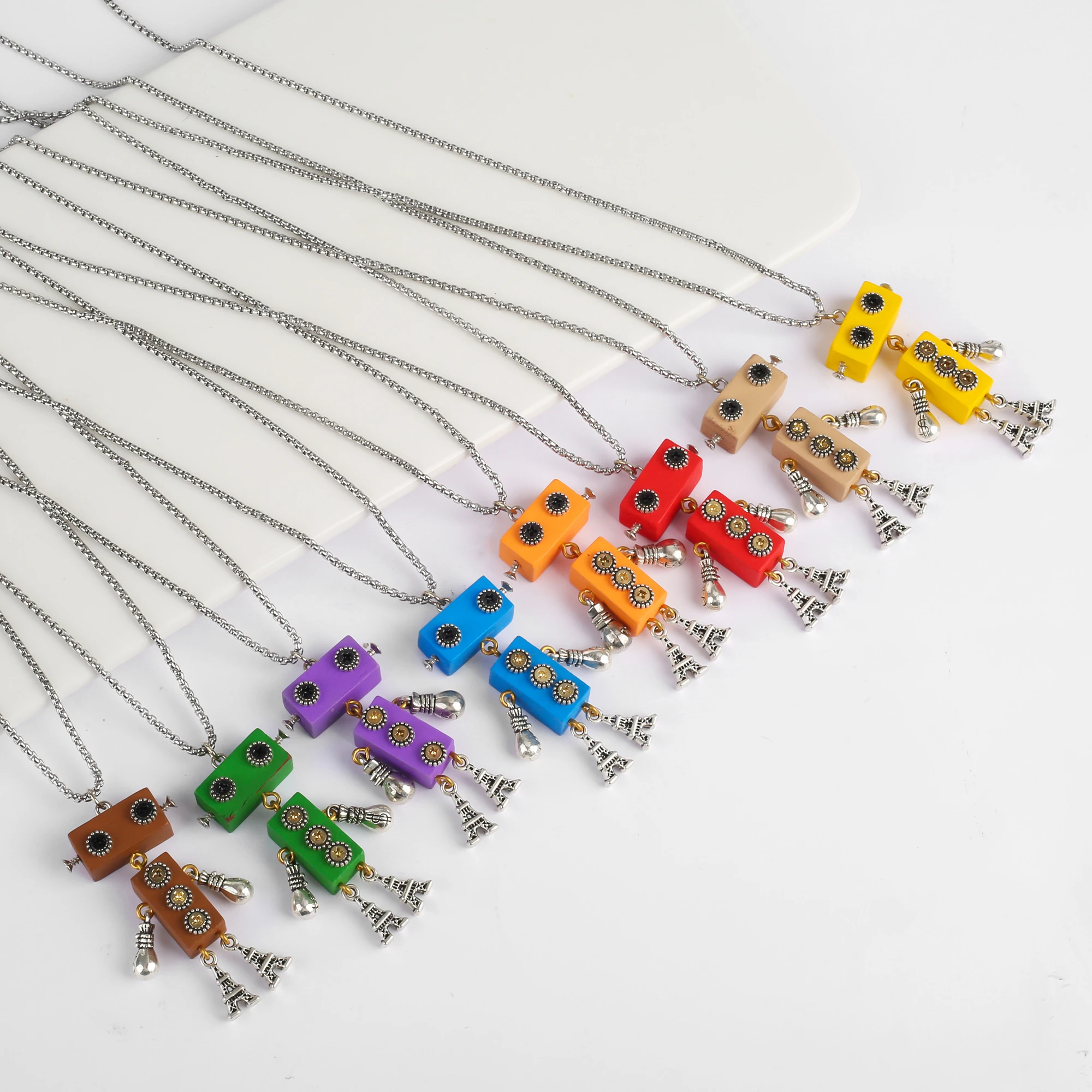 Nuova collana con ciondolo Robot in legno creativo personalità catena maglione cartone animato moda per uomo donna gioielli per feste regalo all'ingrosso