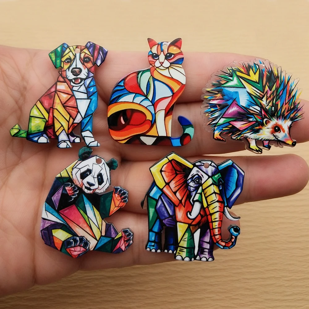 10 pezzi di accessori per gioielli con ciondoli animali in acrilico, collane, bracciali, orecchini, pendenti, portachiavi, fai da te, forniture artigianali