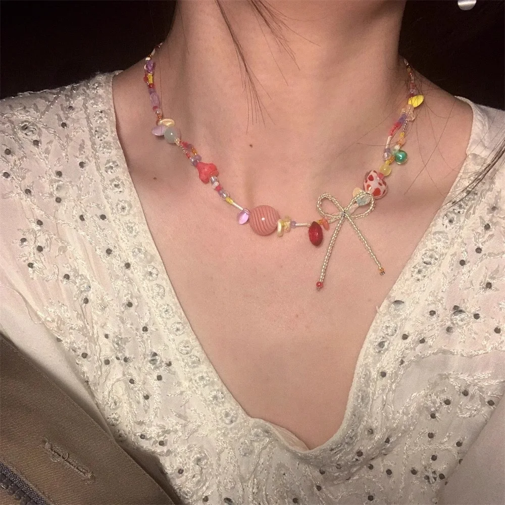 Collana con collare a catena con clavicola e collana con ciondolo a catena con clavicola con perline colorate fresche e uniche