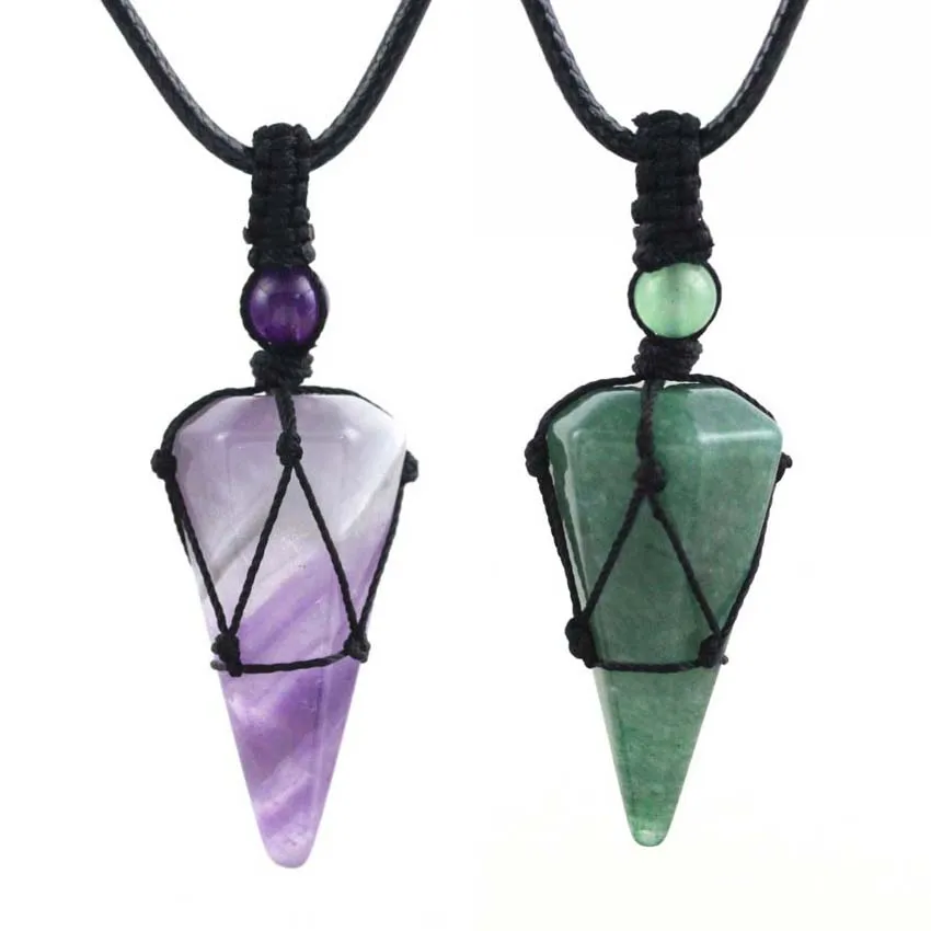 Collana con ciondolo in pietra esagonale di cristallo per donna Ametista naturale Pendenti in pietra di avventurina verde Gioielli con cordoncino in corda regolabile