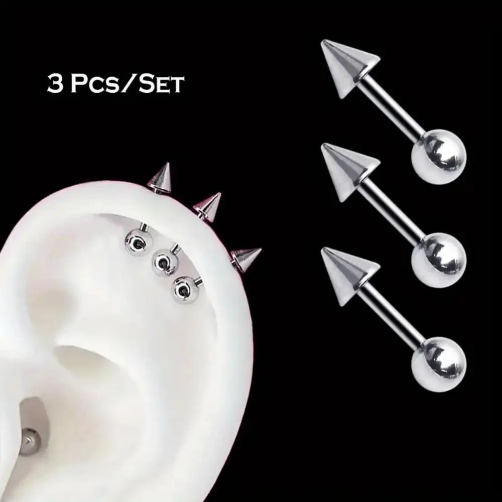 3 pezzi/set orecchini a bottone con punta in acciaio inossidabile punk semplici per tutte le stagioni ago per orecchio ipoallergenico 316L senza placcatura perfetta Y2K