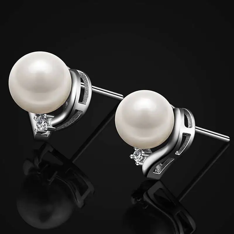 Huitan Orecchini a bottone da donna con perla imitazione design a cuore Elegante fidanzamento Matrimonio Accessori chic Gioielli alla moda con CZ lucido