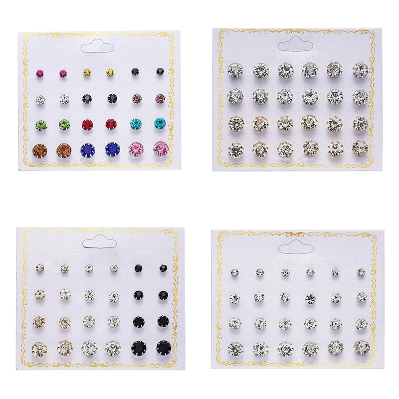 30 pezzi di orecchini con zirconi di cristallo a sei artigli geometrici con perle retrò, adatti per l'uso quotidiano sia per uomini che per donne
