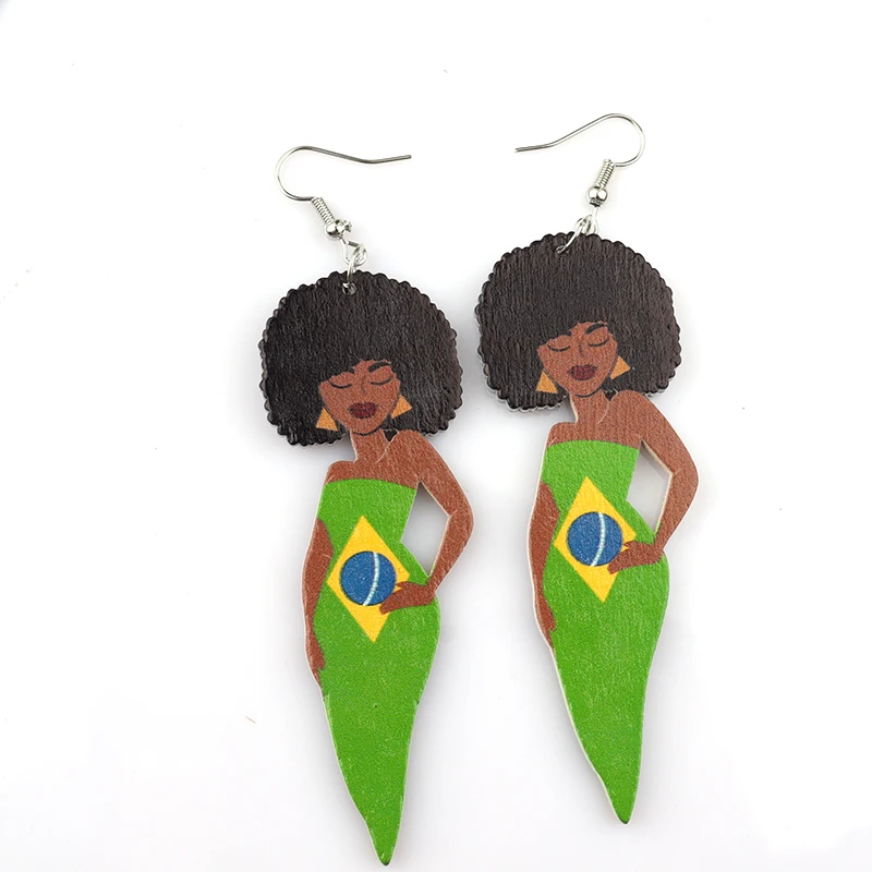 gli orecchini in legno da donna con bandiera possono disegni misti