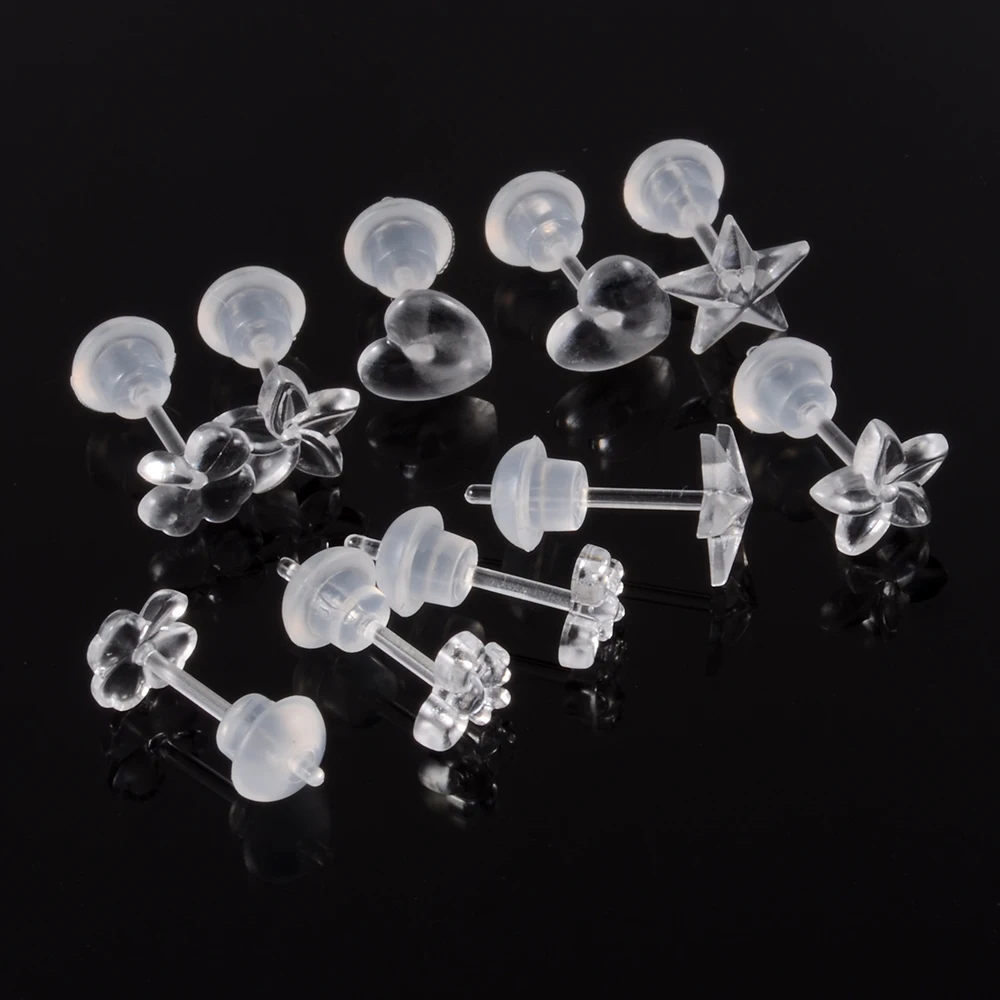 Orecchini a perno in resina plastica trasparente invisibile e gomma siliconica morbida per piercing da donna, gioielli a forma di stella a quattro foglie