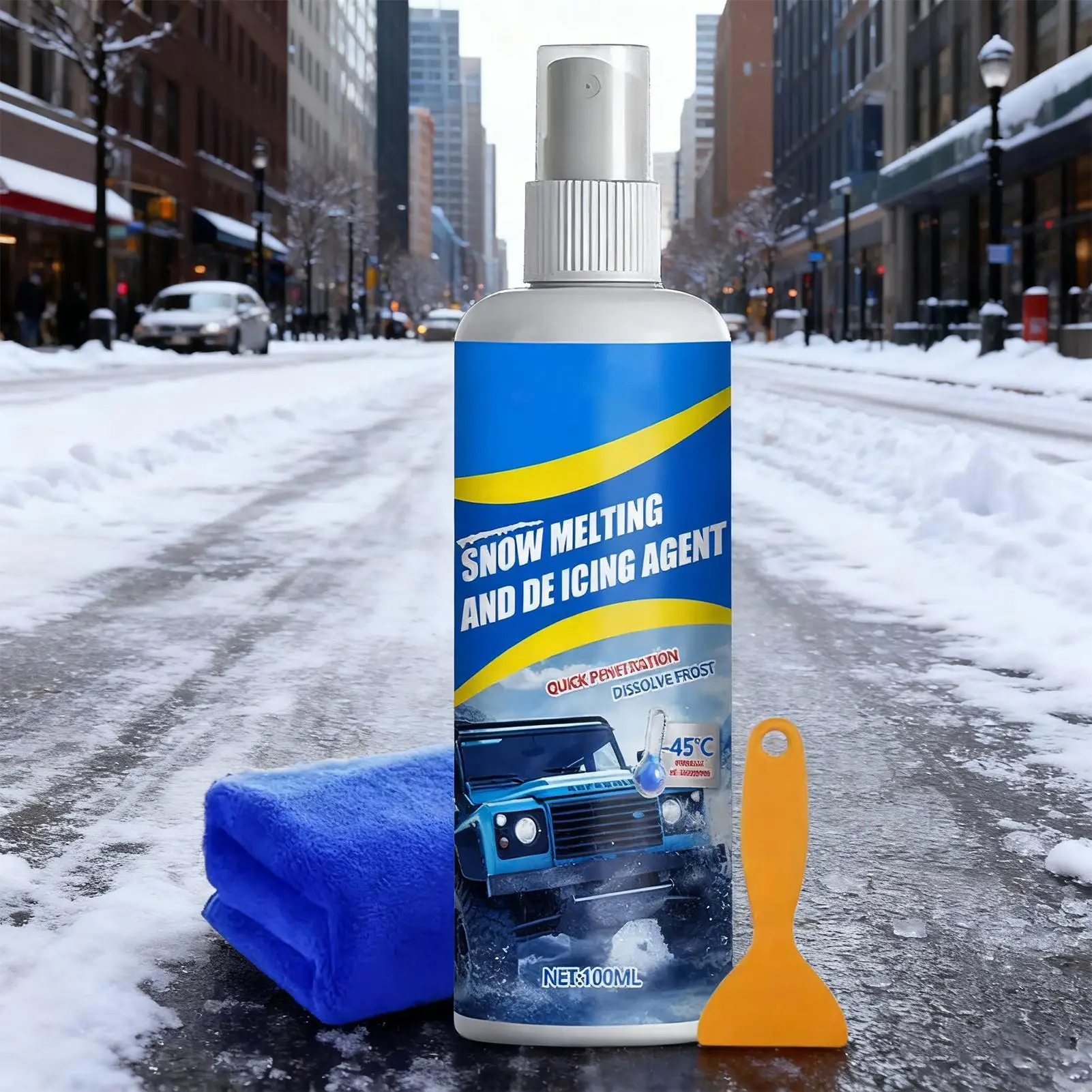 Deicer per parabrezza 100ml Agente per sciogliere la neve Spray antighiaccio per parabrezza con raschietto e asciugamano per camion automobilistici SUV durante